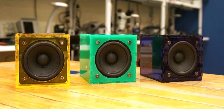 The next step is to attach the speaker to the acrylic plate.